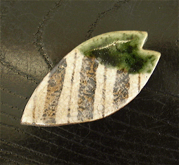 葉っぱをモチーフにした織部釉の箸置きです。シンプルでスマートなデザインなので場面を選ばず使える一品です。