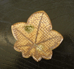 黄瀬戸釉に織部が浮かぶ渋みのある一品です。季節の彩りを演出する存在感のある箸置きです。