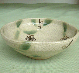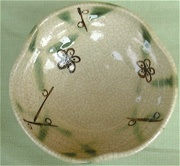 | 弥七田とは織部が線で表されている絵柄のことをいい、あっさりと上品に仕上っています。また形が丸ではなく三ヶ所に少しくぼみをつけて持ちやすく工夫されています。 手作りのためにひとつひとつ色合い風合いが違います。あらかじめご了承ください。 |