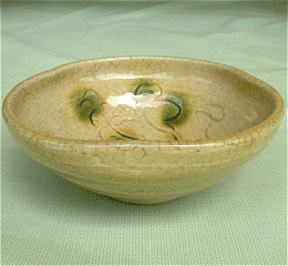 黄瀬戸釉にかぶのの絵柄があしらわれた小鉢です。かぶは大地に根ざし実るという意味があり大変縁起がよいものです。