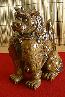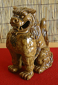 | 今にも襲い掛かって来そうなくらい迫力がある狛犬です。光をよく反射する黄瀬戸釉と非常に胸板が厚く筋肉隆々な姿がマッチし、たくましい狛犬です。 手作りのためにひとつひとつ色合い風合いが違います。あらかじめご了承ください。 |
