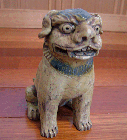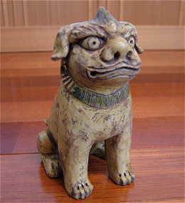 | 愛らしいおっとりした表情ですが、家の守り神として厳しく存在感のある表情にも読みとれる造詣の狛犬です。瀬戸にある愛知県陶磁資料館に所蔵されている伝統的な形のひとつです、 手作りのためにひとつひとつ色合い風合いが違います。あらかじめご了承ください。 |
