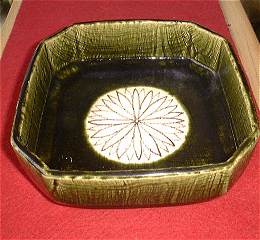 | KSI-1 | 織部菊菓子鉢 | たて 16.5cm よこ 16.5cm 高さ 5.5cm |