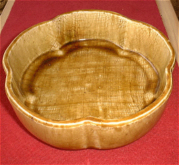 | 梅の花の形をかたどった黄瀬戸釉の菓子鉢です。上品でオーソドックスな無地なので場面を選ばす重宝します。全体が布目になっており、底面に三つの足がついています。 手作りのためにひとつひとつ色合い風合いが違います。あらかじめご了承ください。 |