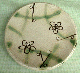 | 織部が線で表されている弥七田織部という伝統的な絵柄です。小花がうまく溶け込み風合いが出ています。ろくろをつかわないタタラ作りでなの、小さいながらも存在感のある小皿です。 手作りのためにひとつひとつ色合い風合いが違います。あらかじめご了承ください。 |