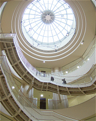 | 入り口を入ると4階まで吹き抜けのまるで劇場のようなエントランス。一階部分には飲食店の「蔵所」と陶磁器ショップの「瀬戸蔵セラミックプラザ」があります。随所に瀬戸焼の町という工夫がちりばめてありました。お腹の減りを感じ「蔵所」へ入り味噌カツ定食を注文。1280円とちょっとセレブ向け。(味は各自で確認して下さい。)器の持ち帰りも出来るセットもありました。 | |