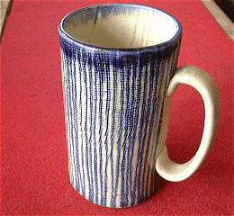 | 布目の下地に一本一本作家さんが手書きで呉須を描いたビールジョッキ。イメージとしては女性的・バドワイザー・カロリーハーフビールって感じですね。 手作りのためにひとつひとつ色合い風合いが違います。あらかじめご了承ください。 |