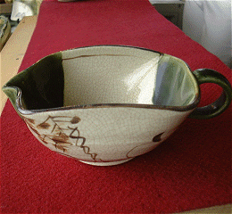 | 織部とつたの絵柄で落ち着いた雰囲気の湯冷ましです。湯冷まし以外の使い方として、ドレッシングやスープを入れたりするのも良いのでは。 手作りのためにひとつひとつ色合い風合いが違います。あらかじめご了承ください。 |